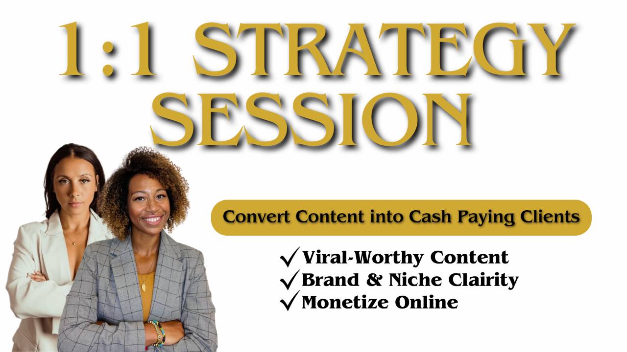 It's time to pull the guesswork out of posting on TikTok and have a full on individualized strategy that will *actually* work for you. This is an accelerated, jam packed 1 hour Strategy Call, where we run through a strategy created specifically for you and your account/business step-by-step live on call, walk you through it, and send you on your way to be successful.
